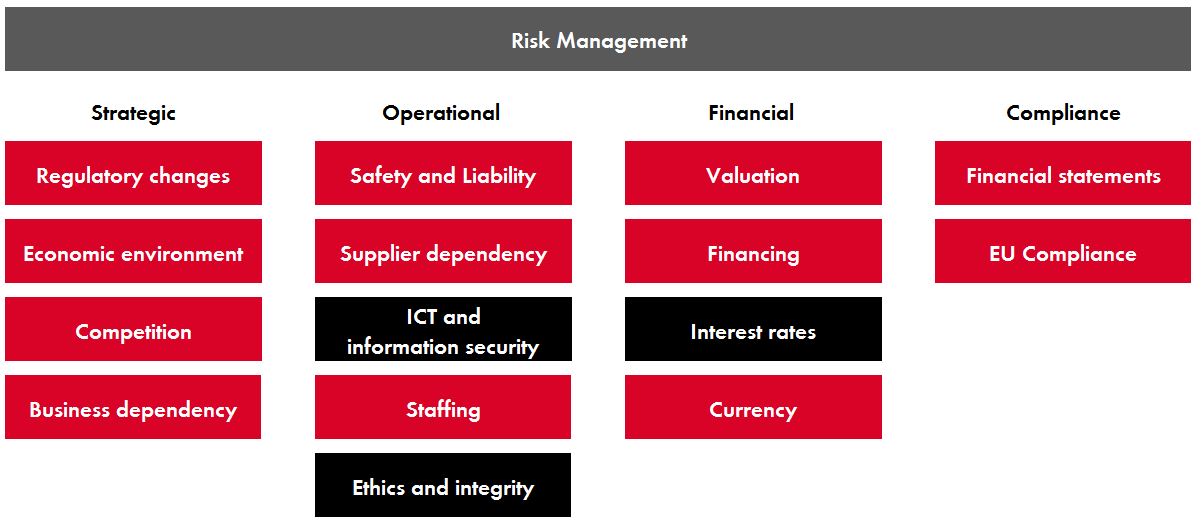 The main risks matrix shows which aspects have the greatest influence on Q-Park's strategy and results.